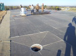 The 22 year old original roof system is being replaced with a ballasted EPDM membrane. A new insulation system is being installed to augment drainage and increase r-value. Because of the increased r-value, the Owner is eligible for Energy Star Credit. Other project highlights include large areas of lightweight gypsum replacement and a new perimeter paver system which, will protect the new membrane from track equipment that is periodically staged on the roof system.